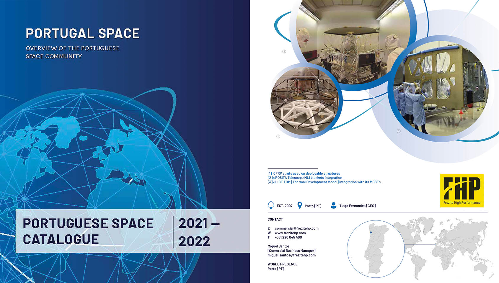 O catálogo Portugal Space – Overview of the Portuguese Space Ecosystem apresenta um retrato aprofundado do ecossistema do setor espacial português. Deste documento fazem parte 52 empresas, entre as quais a FHP – empresa do espaço do Grupo FREZITE – e 30 centros de investigação.